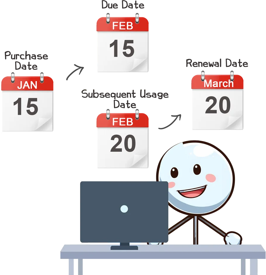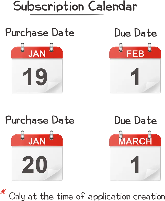 As already stated, the basic usage of xorkeesign consumes one unit per month. Here the month is counted from the date the user starts actually signing using xorkeesign. (Logging into xorkeesign will also count as a signature). The next unit shall be due on the same date the next calendar month but will actually be consumed only when the user does his signature after the due date. Thus if he buys the subscription on 15 Jan 2024, his next subscription shall be due on 15 Feb 2024. But if he does not use xorkeesign on 15 Feb 2024 but resumes signing only on 20 Feb 2024, his subscription shall be counted from 20 Feb 2024 and his next due shall arise only on 20 Mar 2024. The user does not pay for unused days after expiry of subscription. If the subscription due falls on a non-existent date like say Feb 30th or April 31st, the day will be shifted to the 1st of next month.