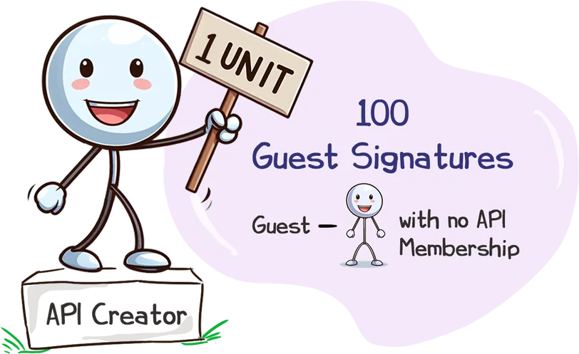The exception to this is when the application (API) treats a member as a guest. Such guest members need not be subscribed to xorkeesign. The application owner should additionally provide one unit for every 100 such guest signatures or part thereof in every calendar month.