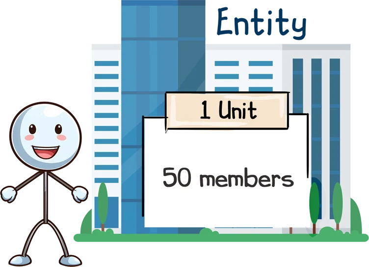 For creating an entity in xorkeesign, the entity owners shall be charged additional units on the basis of members added to the entity. The charges here shall be one unit per 50 members with a minimum of one unit per month. The dates as applicable to the API shall also apply to entities.